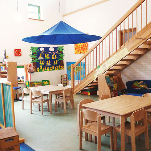 | Krippengruppe im Zwergenland | 8:00 -14:00 Uhr Frühdienst ab 7:00 Uhr Spätdienst bis 15:30 Uhr |